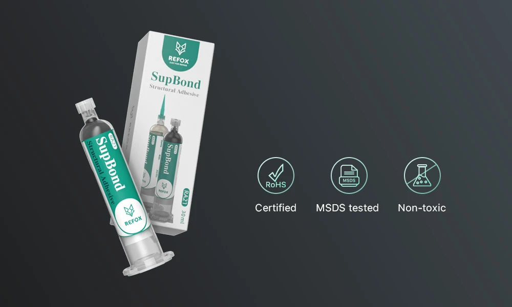 SupBond is designed with both technician safety and device integrity in mind. Its non-toxic formulation is compliant with international environmental and safety standards including RoHS and MSDS. SupBond delivers reliable performance without compromising technician health or device materials.