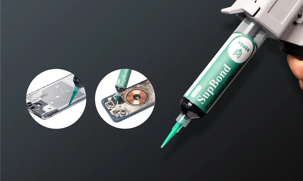 SupBond is REFOX’s structural adhesive made for professional smartphone repair. It offers a factory-grade bond with lasting stability, combining strong adhesion, controlled flexibility, and wide compatibility to ensure reliable repairs in various scenarios. Whether fixing display assemblies or restoring back glass, SupBond creates a clean, precise, and durable hold that withstands stress and endures over time.